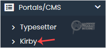 4. On the left side, locate the Portal/CMS category. Click on it and then on the Kirby link that appears.