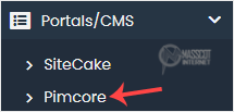 4. On the left side, locate the Portal/CMS category. Click on it and then on the Pimcore link that appears.