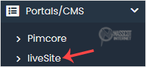 4. On the left side, locate the Portal/CMS category. Click on it and then on the liveSite link that appears.